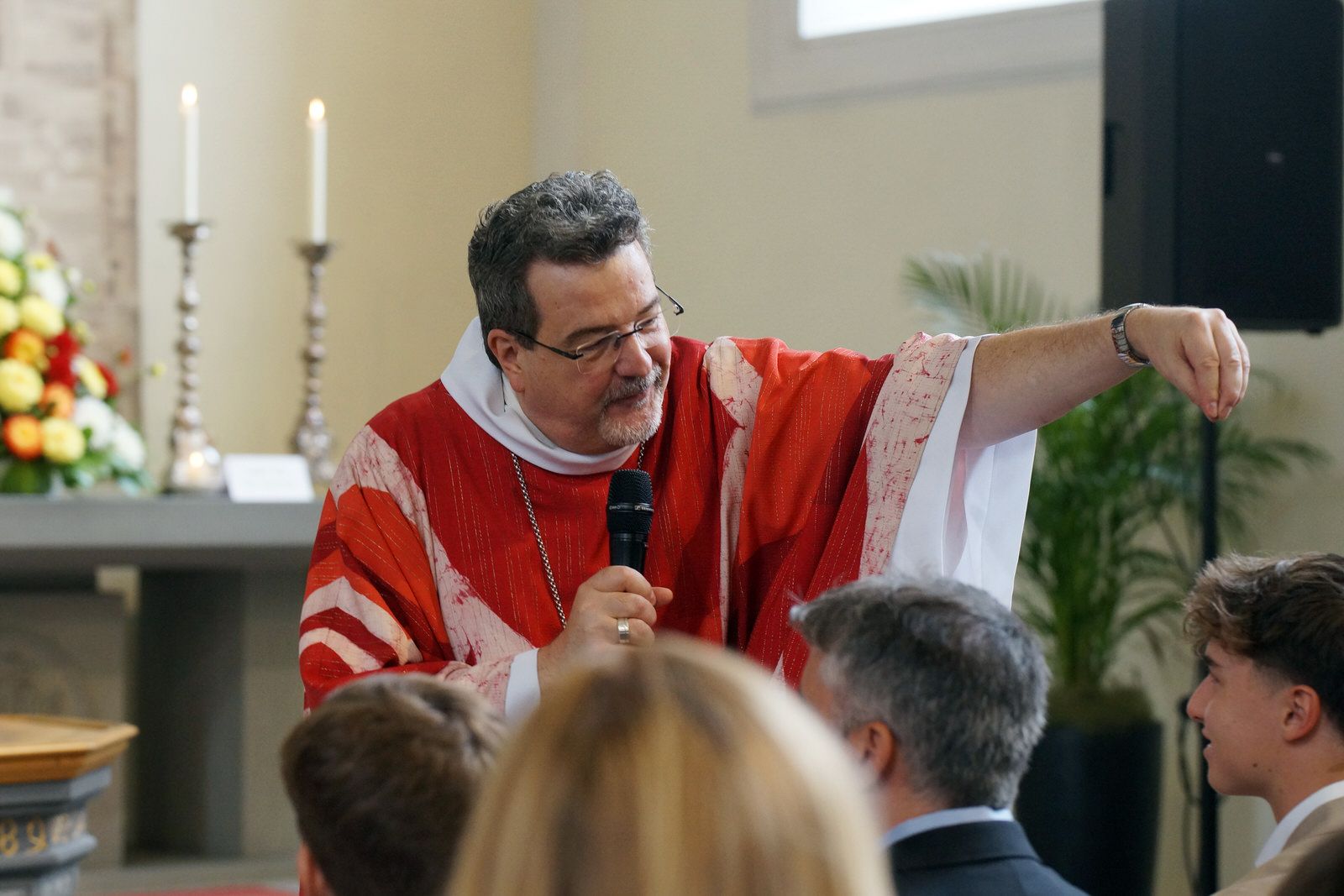 In seiner Predigt fragte er die Firmlinge, wie sich der Hl. Geist im Text der Lesung aus der Apostelgeschichte bei den Jüngern gezeigt habe. Der Evangeliumstext forderte auf, Eltern, Familie und Freunde zu verlassen und sein Kreuz auf sich zu nehmen. Er nannte diesen Text „happig“. Doch Jesus meint nicht, dass wir sein Kreuz tragen müssen, sondern jede und jeder sein eigenes Kreuz zu tragen habe. Mit Kreuz sind Alltagsmühen und Schwierigkeiten gemeint. Er sprach den Firmlingen aber auch Mut zu: "Die Firmung ist ein Zeichen, dass man das Kreuz, den Alltag, nicht allein bewältigen muss. Jesus kommt in unser Leben hinein und begleitet uns täglich."