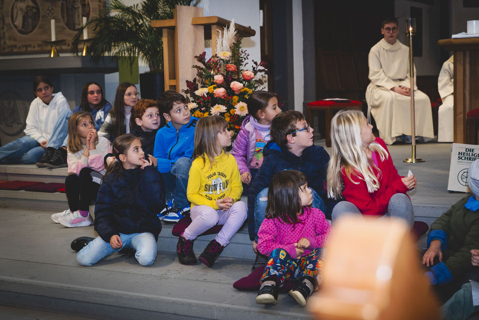 Mithilfe einiger Bilder erzählte Simone Zierof seine Geschichte. Dank der vielen Kinder, die sich rege am Gottesdienst beteiligten, wurde es eine schöne und belebte Feier. Der Kinderchor unter der Leitung von Dieter Hubov gab dem Gottesdienst einen besonderen Rahmen. Am Schluss kamen alle Kinder nach vorne, zündeten an der Osterkerze ihre mitgebrachten Laternen an und zogen gemeinsam aus der Kirche aus.
