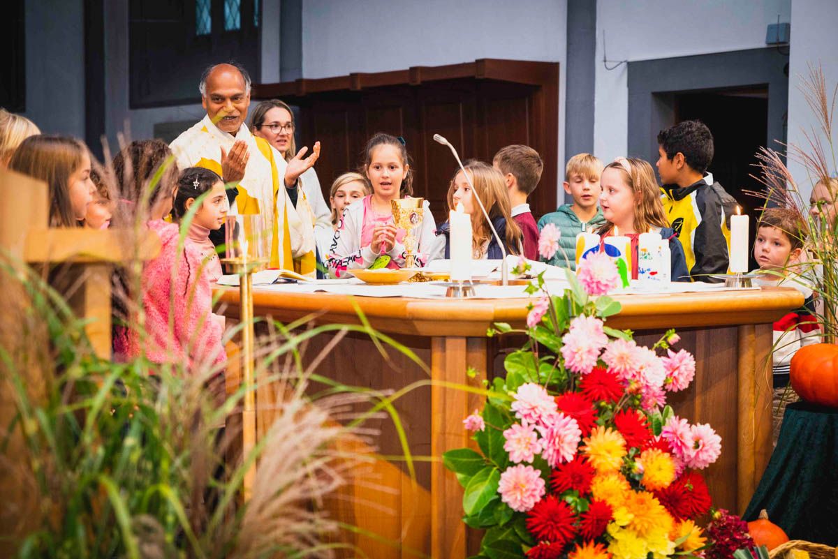 In den gemeinsamen Gottesdiensten feiern wir unseren Glauben. Sie als Familie können dort Gemeinschaft erleben und die Kinder lernen die Eucharistie kennen. Besonders laden wir Sie zu den besonderen Gottesdiensten für die Erstkommunionkinder ein!