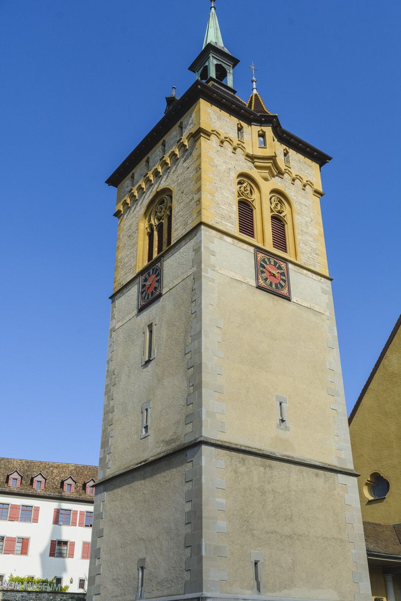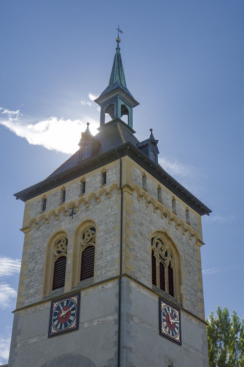 Verschiedenen Reparaturen im 19. Jahrhundert folgen dann zwei markante Veränderungen: 1895 erhält der Turm – nach dem Abbruch des bisher als Glockenstuhl dienenden Holzgadens – den heutigen Aufbau im neugotischen Tudorstil sowie fünf neue Glocken (Gesamtgewicht 7396 Kilo). 1952 und 1953 folgt unter Pfarrer Josef Hofmann eine mutige Totalrenovierung. Das Kircheninnere wird radikal ausgeräumt. Die neue künstlerische Ausstattung entspricht dem Zeitgeist der 1950er Jahre. Das schlicht gestaltete Langhaus erinnert an die Jahrhunderte der gemeinsamen Nutzung mit den evangelischen Gläubigen. Nach der Erneuerung des liturgischen Mobiliars nach den Grundsätzen des zweiten Vatikanischen Konzils erfolgt 1986 unter Pfarrer Josef Frei eine behutsame Innenrenovierung. An sie halten sich die Kirchenvorsteherschaft, Planer und Handwerker bei der in diesen Tagen abgeschlossenen Erneuerung.