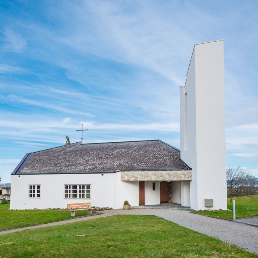 Etwas versteckt am Rande von Roggwil liegt die Kirche St. Otmar. Erbaut wurde sie im Jahr 1963. Obwohl – oder vielleicht gerade weil – sie ohne grossen Prunk und Schnörkel auskommt, besticht sie in ihren einfachen Linien als schlichter Betonbau. Auch das Innere der Kirche ist bewusst sehr reduziert gehalten. Gerade dadurch entsteht eine schon fast gemütliche Atmosphäre, die den dort gefeierten Gottesdiensten eine ganz besondere Note und auch Intimität verleiht.