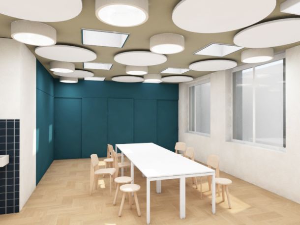 Vor allem als "Regenbogenzimmer" ist der Mehrzweckraum beim Foyer bekannt. Dieser wird eine grosse Auferwertung erhalten mit moderner Einrichtung, Platz für die musikalischen Gruppen unserer Pfarrei - und vor allem neu mit Tageslicht.