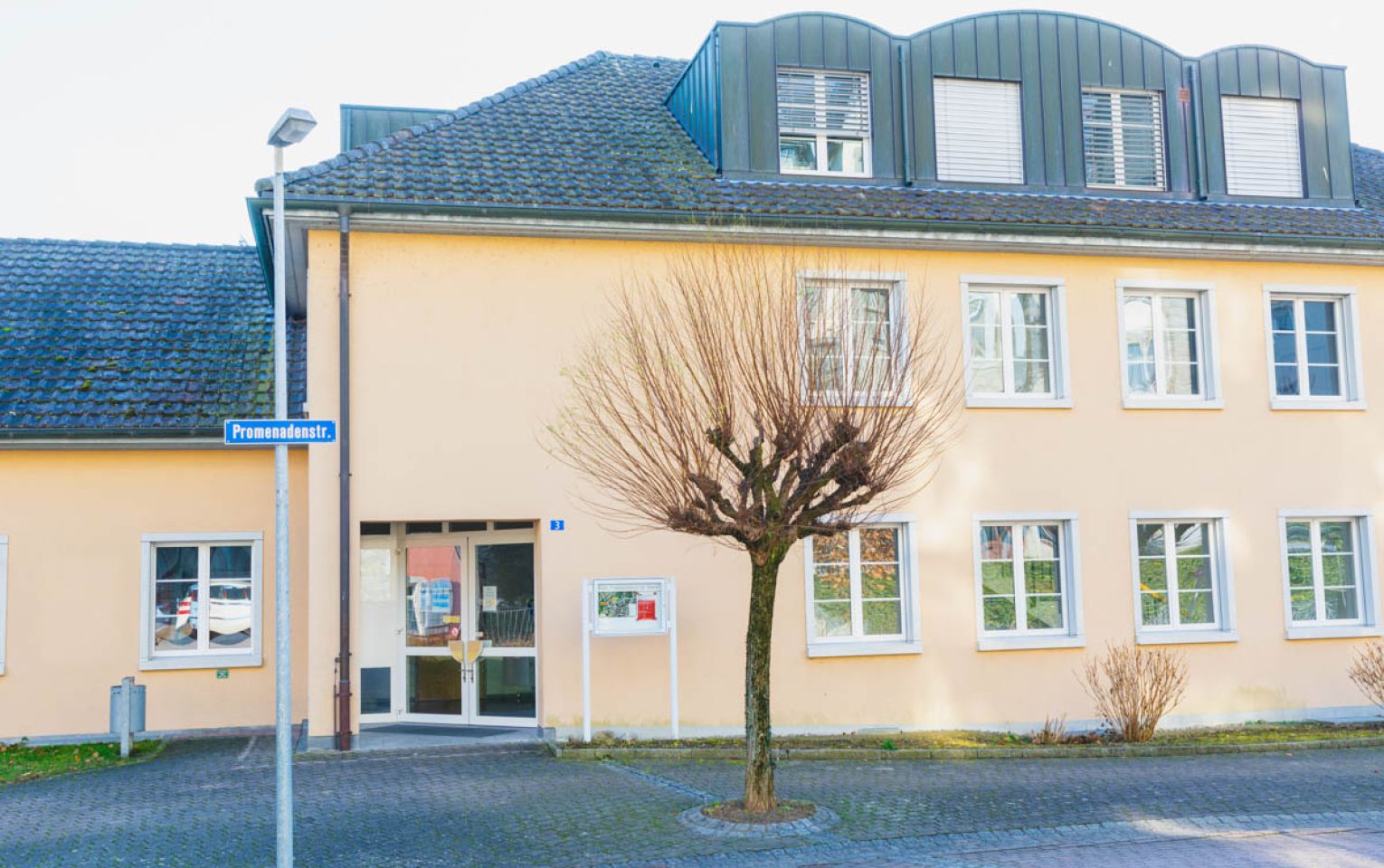 - Einbau von Fenstern und Lichtschächten hin zur Promenadenstrasse für mehr Tageslicht